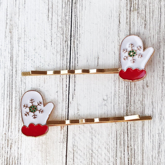 Winter Mittens Enamel Hair Pins - Whimsical Christmas Bobby Pins