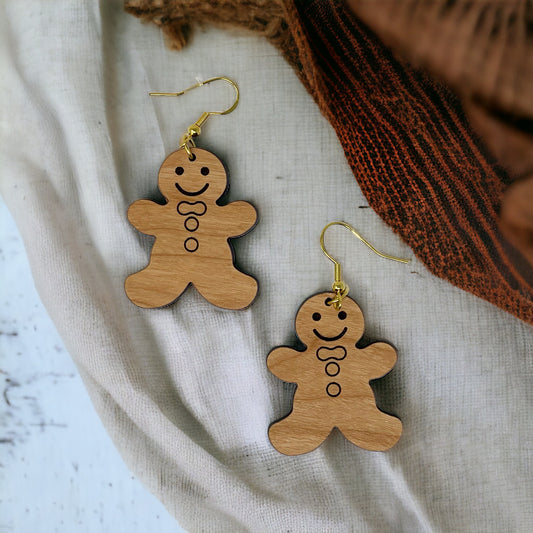 Gingerbread Man Wood Earrings – Cute Holiday Christmas Cookie Jewelry