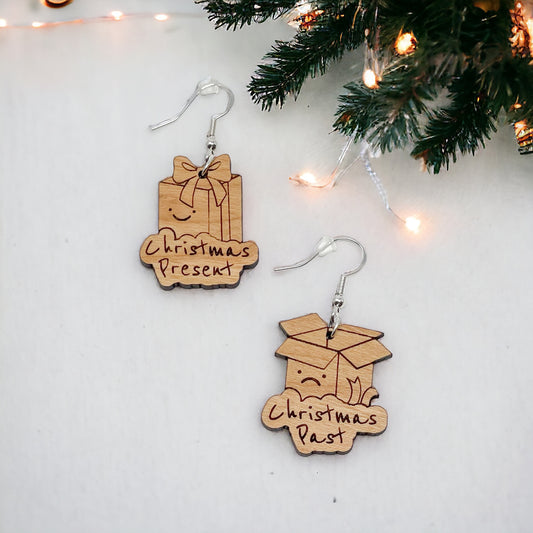 Christmas Present & Past Earrings – Funny Holiday Gift Box Jewelry