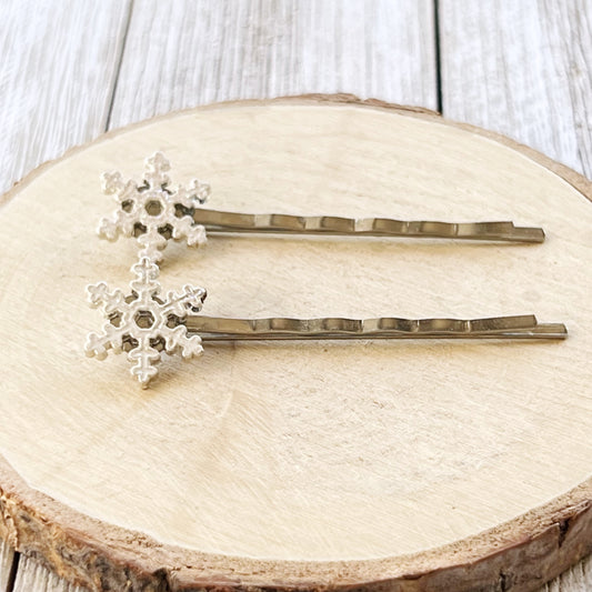 Glitter Snowflake Hair Pins – Silver Holiday Hair Clips with Icy Sparkle