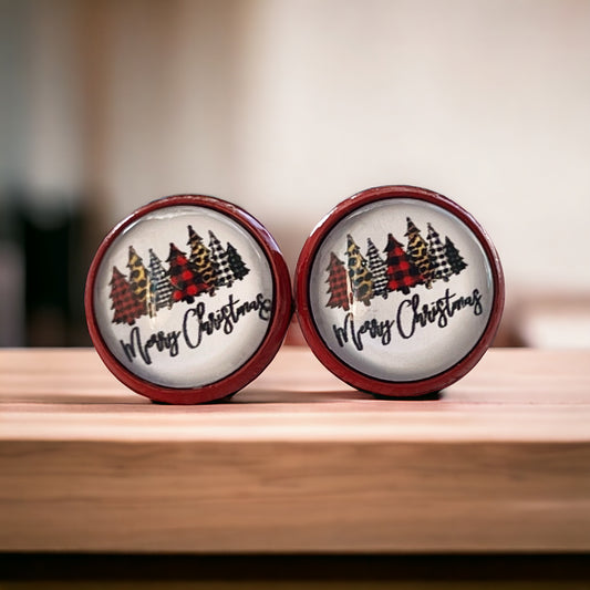 Red Stud Earrings with Christmas Trees: Spread Holiday Cheer with 'Merry Christmas' Design