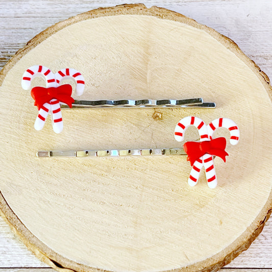 Candy Canes with Red Bow Bobby Pins - Holiday Accessories