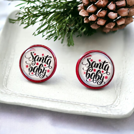 Red Stud Earrings: Festive 'Santa Baby' Design for Christmas Cheer