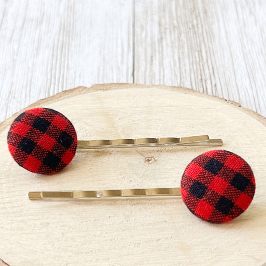 Red Buffalo Plaid Christmas Holiday Bobby Pins