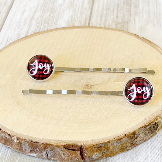 Red Buffalo Plaid Joy Christmas Holiday Bobby Pins