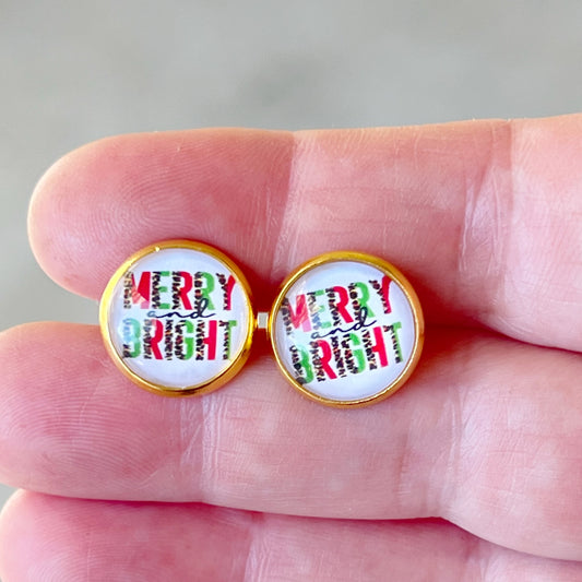 Merry & Bright Gold Christmas Stud Earrings - Festive Holiday Accessories