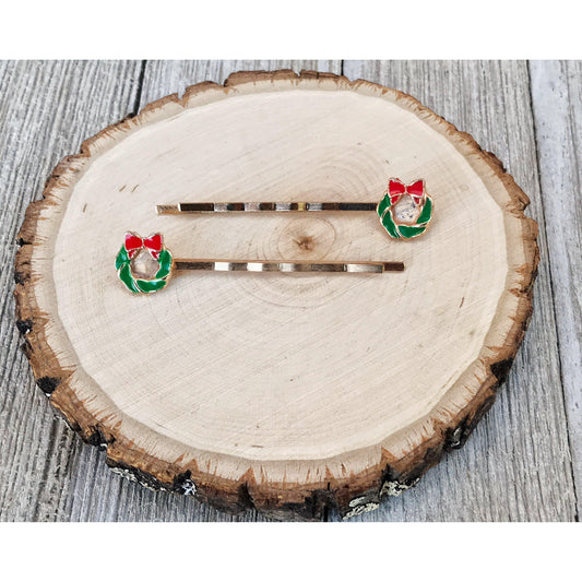 Green Christmas Wreath Hair Pins - Festive Holiday Accessories
