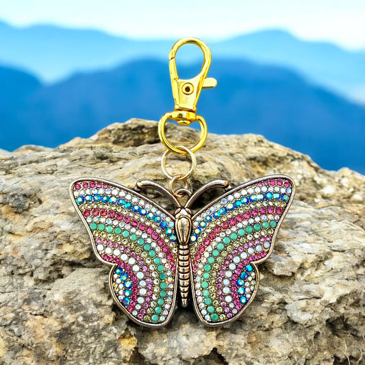 Rhinestone Butterfly Purse Charm – Colorful Gold Bag Accessory