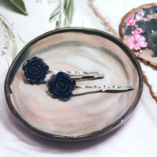 Black Rose Flower Hair Pins - Elegant & Timeless Floral Accessories
