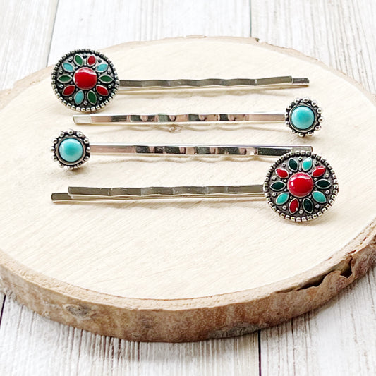 Turquoise Hair Pins - Women's Western Silver Bobby Pins