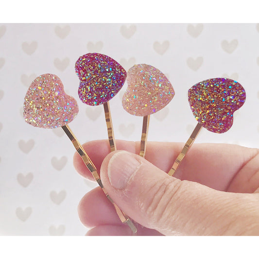 Pink Glitter Druzy Heart Hair Pins Romantic Accessories