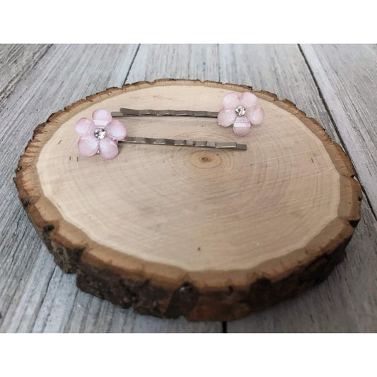 Pink Rhinestone Flower Hair Pins - Elegant Floral Accessories