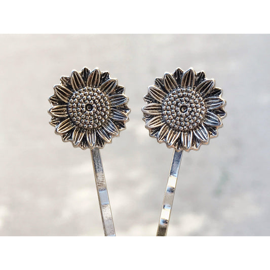 Silver Sunflower Boho Hair Pins Set of 2 Bobby Pins