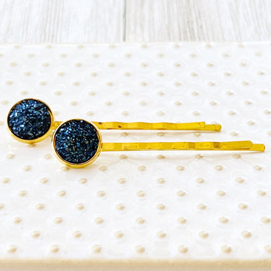 Cobalt Blue Druzy Silver Hair Pins - Elegant Stylish Accessories