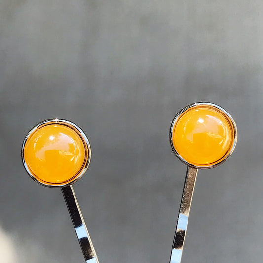 Round Orange Hair Pins - Set of 2 Bright & Bold Bobby Pins