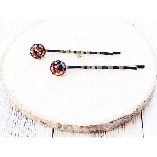 Round Seed Bead Hair Pins - Western Boho Bobby Pin Set of 2