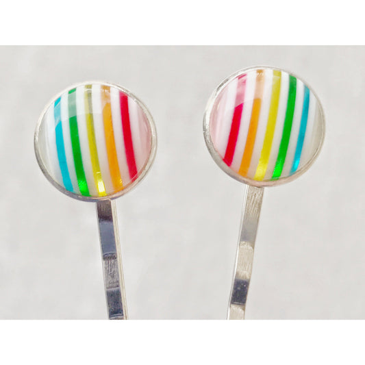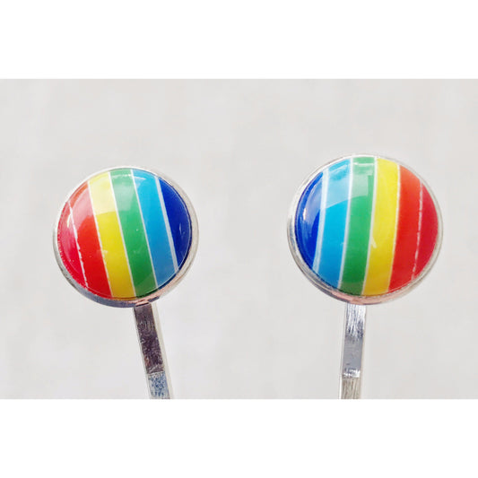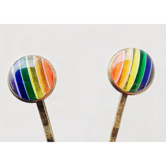 Rainbow Striped Brass Hair Pins - Colorful and Stylish Accessories