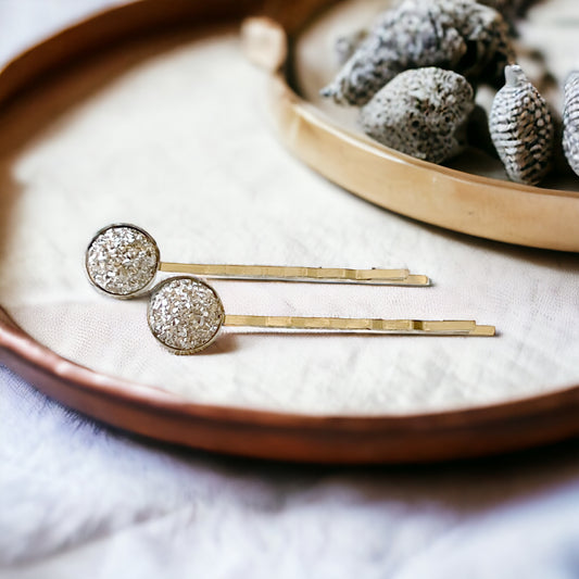 Silver Druzy Hair Pins: Sparkling Accents for Stylish Hairstyles