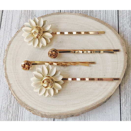 Cream & Gold Metal Floral Hair Pins - Bridal Bobby Pins