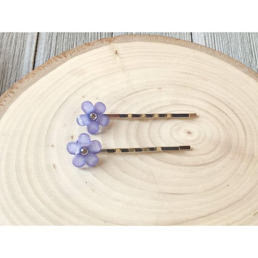 Purple Rhinestone Flower Bobby Pins - Elegant Floral Accessories