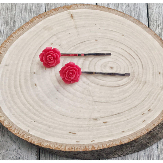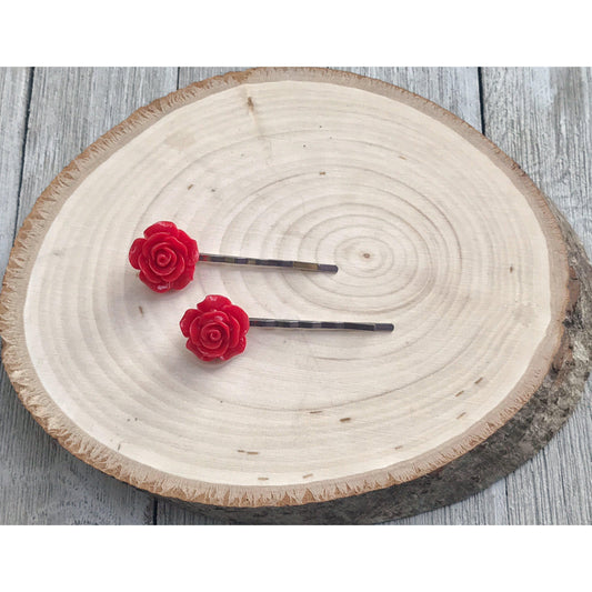 Red Flower Hair Pins - Floral Bobby Pins Set of 2