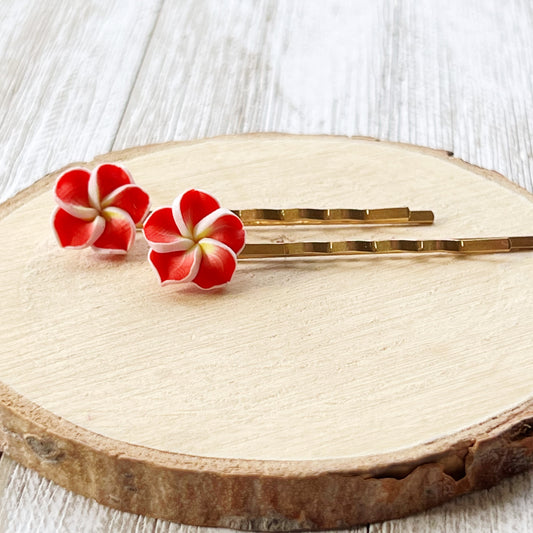 Red Flower Hair Pin - Tropical Floral Bobby Pins - Boho Set of 2