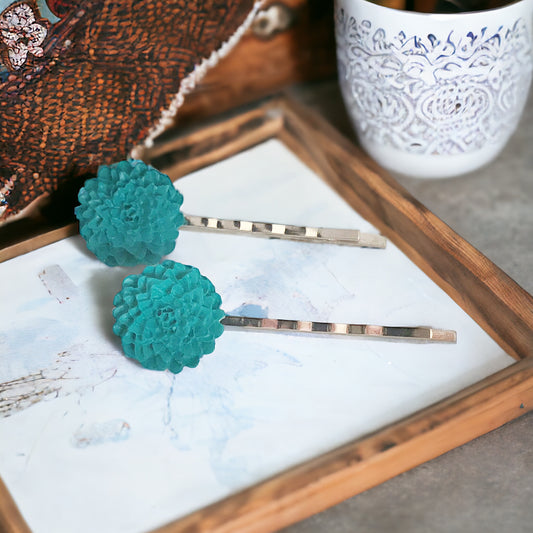 Green Floral Hair Pins - Bridal Bobby Pin Accessories