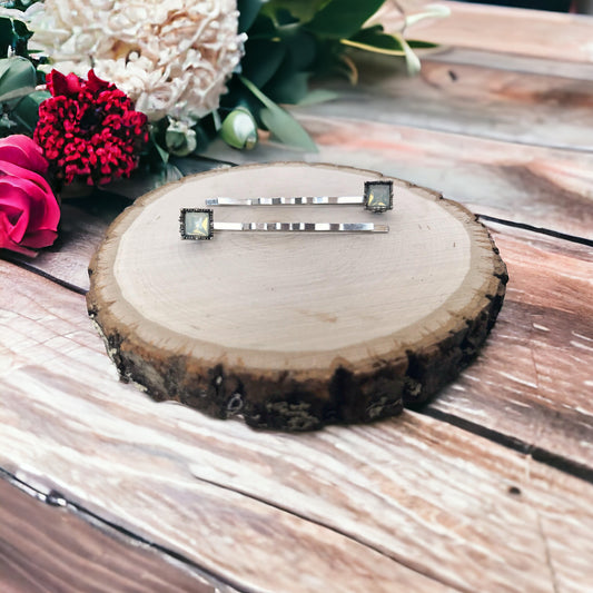 Milky Iridescent Acrylic Square Hair Pins: Boho Chic Accessories