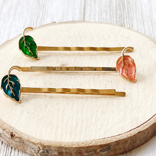 Enamel Leaf Hair Pin Trio – 3-Piece Autumn Hair Clip Set in Fall Colors