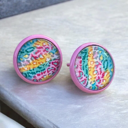 Spring Leopard Print Stud Earrings – Handmade Pastel Animal Print Jewelry