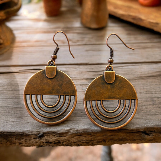 Geometric Copper Dangle Earrings – Boho Chic Round Design