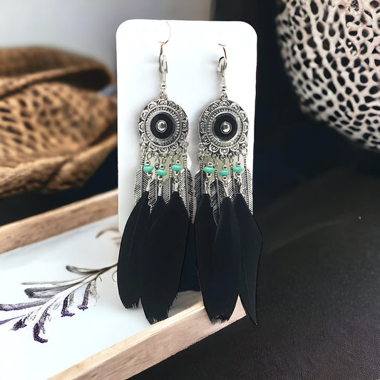 Black Feather Dangle Earrings – Western Boho Chic Jewelry
