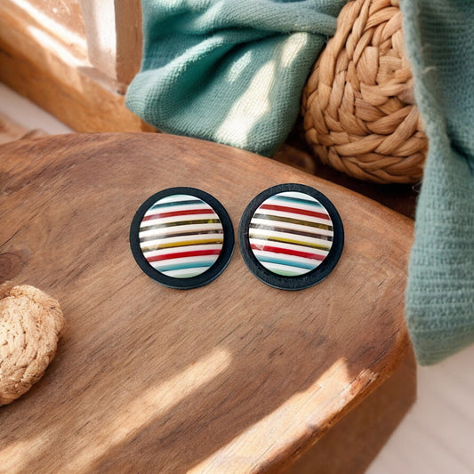 Striped Resin Stud Earrings – Multicolor Round Handmade Boho Jewelry