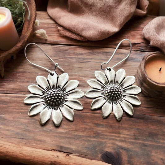 Wildflower Daisy Sunflower Earrings – Silver Boho Chic Jewelry