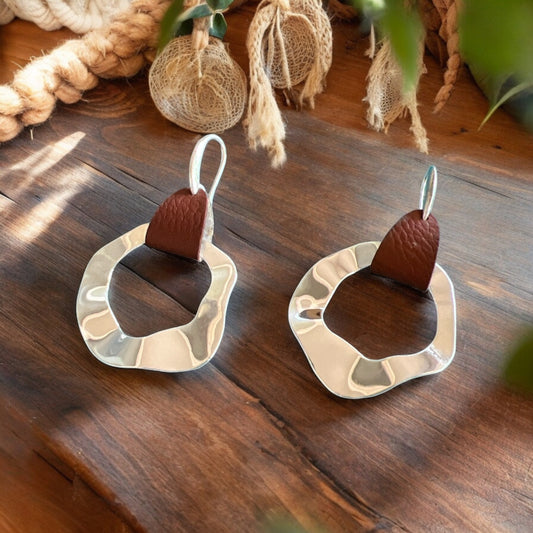 Geometric Swirl Silver & Leather Earrings – Modern Boho Accessories
