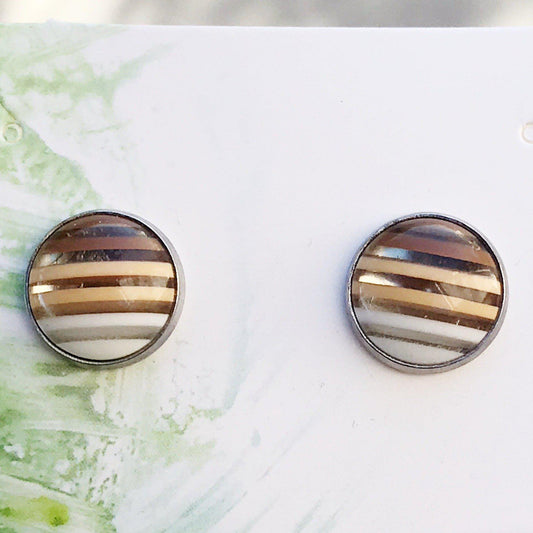 Brown Striped Earrings - Minimalist Studs for Boho Styles