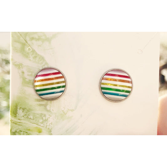 Rainbow Striped Silver Stud Earrings: Colorful & Chic Accessories for Every Day