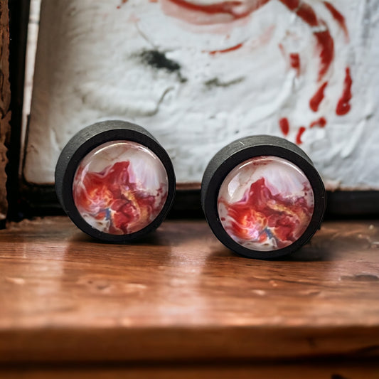 Molten Red Resin Stud Earrings – Bold Abstract Handmade Jewelry