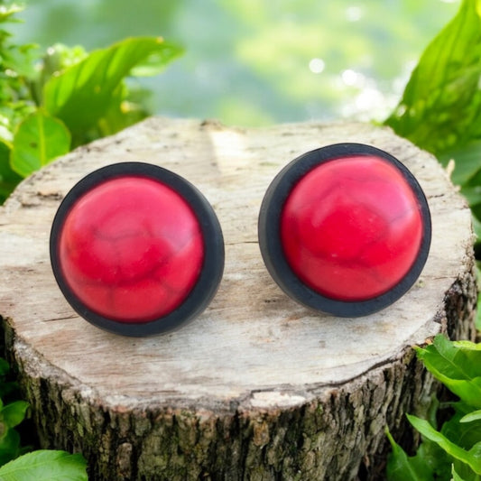 Red Stone Stud Earrings – Handmade Bold Minimalist Wood Jewelry