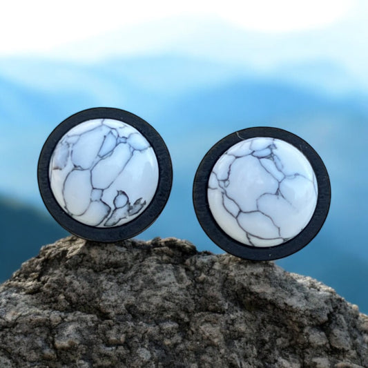 White Stone Stud Earrings – Handmade Marbled Wood Jewelry