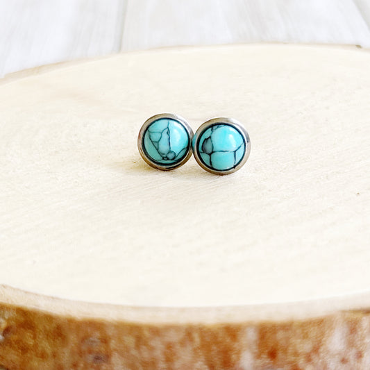 Turquoise Stud Earrings – 6mm Round Silver Boho Western Jewelry