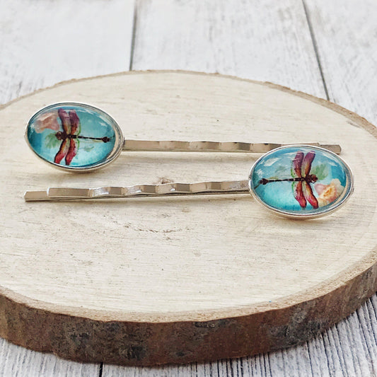 Blue Rhinestone Dragonfly Hair Pins – Tiny Handmade Hair Clips