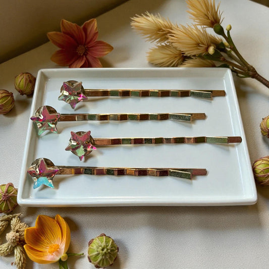 Iridescent Star Hair Pins for Women – Silver Celestial Bobby Pins