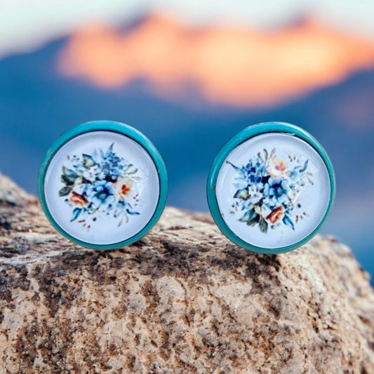 Blue Floral Stud Earrings – Handmade Vintage Cottagecore Jewelry