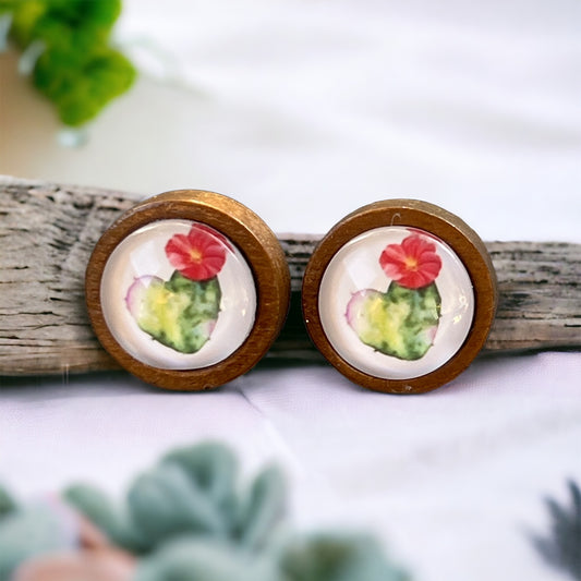 Cactus Bloom Stud Earrings – Wooden Desert-Inspired Jewelry