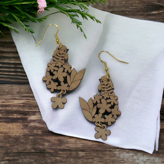 Floral Chicken Wood Earrings – Boho Farmhouse Nature Jewelry
