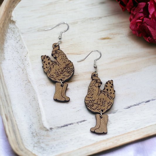 Chicken in Boots Earrings – Quirky Farmhouse Boho Jewelry