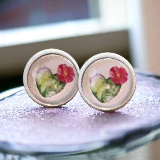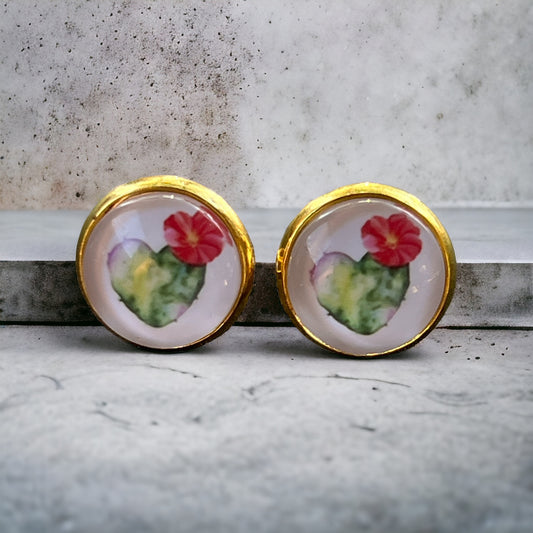 Heart Cactus Stud Earrings – Gold Southwest Botanical Jewelry