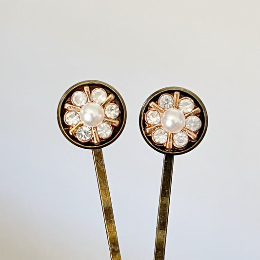 Pearl & Rhinestone Flower Hair Pins – Vintage-Inspired Gold Hair Clips