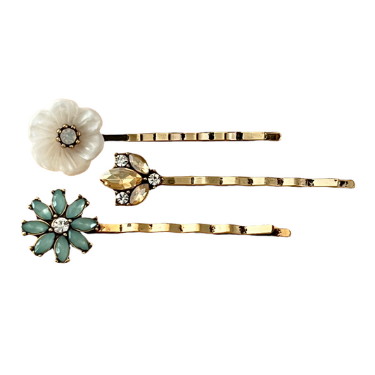 Pearl & Rhinestone Hair Pins – Set of 3 Elegant Accessories